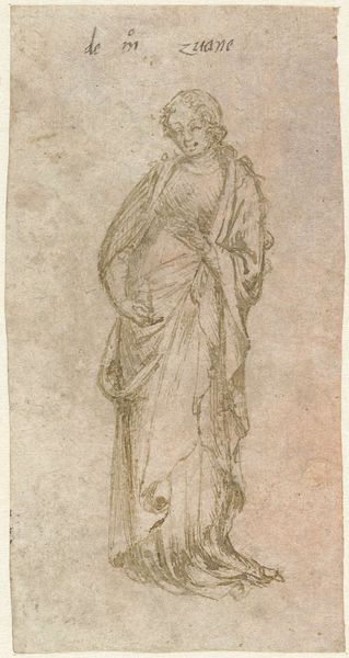 James Abbott McNeill Whistler made this sketch using graphite on paper, but its apparent simplicity belies its radical nature. Whistler spent much of his career in London, a center of artistic innovation. He frequently challenged the artistic establishment through his choice of subject matter and style. Here, the figure's loose and sketchy form, along with her classical dress, places her in a timeless space. This challenged the Royal Academy’s standards of realism and narrative. The woman’s clothing may remind the viewer of ancient Greek sculptures or paintings but lacks the detail associated with academic art. Instead, Whistler emphasizes the aesthetic qualities of line and tone. He’s prioritizing artistic expression over traditional representation. To truly appreciate Whistler's revolutionary approach, one might explore the art criticism of his time and consider the evolving role of the artist in society. This work invites us to reflect on how art institutions shape our perceptions and artistic values.
