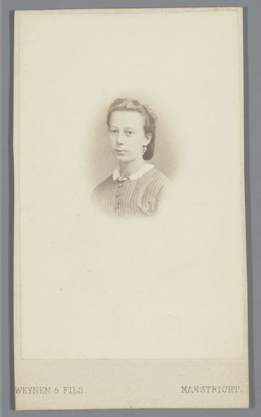 Editor: Here we have a photographic portrait by Eugène Manoury, "Portret van een onbekende vrouw," created sometime between 1870 and 1885. The sepia tones and the woman's averted gaze give it such a quiet, contemplative mood. What do you see in this piece? Curator: I see a commentary on the very act of representation in the late 19th century. Photography offered, ostensibly, a democratic form of portraiture, yet who had access? Who was being excluded, and what societal forces are at play when we consider "the unknown woman"? Is her anonymity a deliberate act of erasure, or simply a reflection of historical neglect? Consider how race, gender, and class shaped whose stories were told and preserved in that era. Editor: So, you're saying her anonymity isn’t just a historical accident but a reflection of power structures? Curator: Precisely. Realism in art, especially photography, aimed to capture an objective reality, yet it inevitably reflects the biases of the artist and the prevailing social order. The photograph seems like a record, but what if this record omits vital details? Editor: It makes me think about all the untold stories from that time. Was it typical to obscure women in these ways in portraiture? Curator: Think about the visual language of the period, the expectation that women occupy particular spaces, usually private. How does the deliberate ambiguity of this image disrupt or reinforce those conventions? We are left to imagine her history, and in that act of imagining, perhaps, begin to address some of those silences. Editor: I’ve never thought of portraiture that way – as a kind of active erasure. Curator: Indeed. And the absence can speak volumes. This photograph is not just a picture, it's a document reflecting what was valued and, equally important, what was deliberately not valued, in 19th century society. Editor: Thanks, that gives me a lot to think about in terms of visual rhetoric and the unseen narratives in historical portraits. Curator: It certainly illuminates photography's fascinating capacity for historical insight.