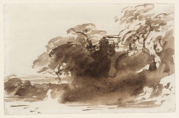 John Varley created this small watercolour wash entitled Valley Landscape. The composition is structured around tonal contrasts, using layered washes of sepia to evoke a sense of depth and atmosphere. The darker, more concentrated tones form a central mass that suggests a cluster of trees or perhaps a rocky outcrop, providing a focal point amidst the lighter washes that represent the sky and distant landscape. Varley's technique here is economical. He uses the fluidity of watercolour to suggest form and texture rather than define them, which leads to an interesting interplay between representation and abstraction. In terms of its historical context, the sublime was a key aesthetic concept. The use of open brushwork may reflect a shift towards valuing the subjective experience of the artist within the Romantic era. This art does not offer a singular view, but rather an invitation to participate in an ongoing visual dialogue.