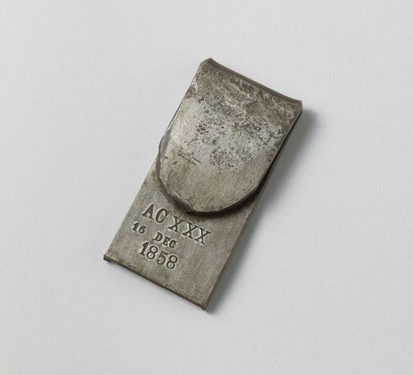 Curator: Looking at this artifact, "Section of a Hollow Stringer," dating back to around 1868 and attributed to the Millwall Iron Works, my immediate impression is how functional yet severe it appears. A stark object stripped down to the essential shape. Editor: "Stripped down" is a good way to put it. Its austerity, though, has a certain presence. The grey metal and precise geometric form evoke industry, purpose, but also a sense of monumental labor. The 'Millwall' stamp at the top suggests a very particular story too. Curator: It certainly does. Consider that "Millwall Iron Works" wasn't just stamping out metal. The company contributed to enormous feats of engineering - bridges and steamships shaping global trade routes. And, I believe, that stamp becomes more meaningful - like an implicit emblem of technological progress during the Victorian era. A powerful symbol, reflecting social shifts and innovations. Editor: Right, it is fascinating to consider it beyond just the formal geometry. The fact that it's a "Section" also suggests that this object is a fragment of a much grander structure. What was this object designed for? Who were the workers, and what were their daily conditions like? The metal itself surely came from somewhere – the result of intensive mining. Every step leaves its trace. Curator: Indeed, the material carries an unspoken weight – a connection to the earth and human endeavor. It leads us to reflect on the massive scale of ironworks industries. Perhaps the simplicity of its geometric form echoes something similar: the drive toward rationality. This era celebrated logic, engineering. But perhaps they weren't always attainable or available to those manufacturing them. Editor: And speaking of manufacturing, let’s remember the craftsmanship and techniques involved in producing this piece back then. The metalworking processes of the time—forging, casting – that left indelible marks on human experience, transforming society, even ecology, irrevocably. Curator: So, despite its austere look, "Section of a Hollow Stringer" encapsulates more than mere functionality; the stringer stands to us a physical reminder to past feats of engineering and production! Editor: Agreed, now, knowing some of the contexts, I find this small piece rather awe-inspiring. It carries the echo of tremendous social transformation with every sharp corner.