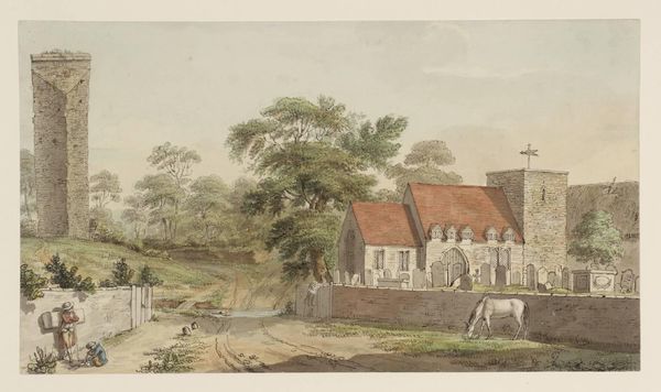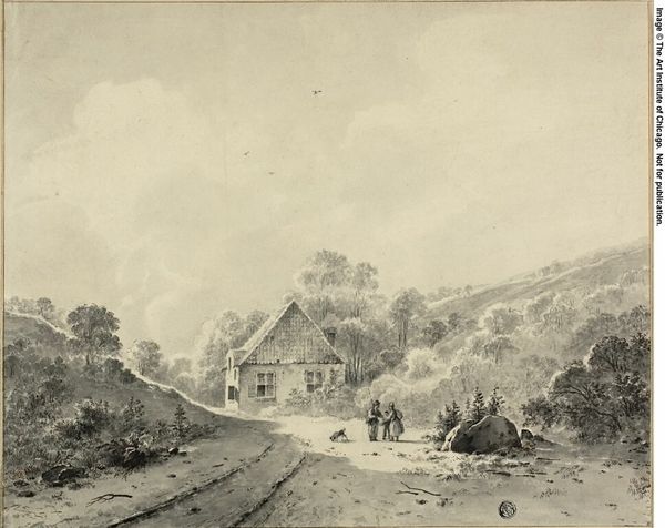 Editor: Here we have "The Missionary Premises at Kuruman Station" by George Baxter. It depicts a rather idyllic scene, but what strikes me is the way the missionaries seem to be surveying the land. What's your take? Curator: It’s crucial to unpack the term "missionary." This image isn't just a landscape; it’s a visual representation of colonialism's advance. How do we reconcile the apparent tranquility with the displacement and cultural erasure that often accompanied missionary work? Editor: So, it's not just about the buildings, but about the power dynamics at play? Curator: Exactly. Consider the gaze of the missionaries—what does it mean for them to be positioned as the viewers, the surveyors, within this context? What’s being overlooked or actively suppressed within this seemingly peaceful scene? Editor: I hadn't considered that the "peaceful" setting might mask a more complex reality. Thanks for pointing that out. Curator: Art can serve as a powerful tool to initiate dialogue about social justice issues, even if it's historical art.