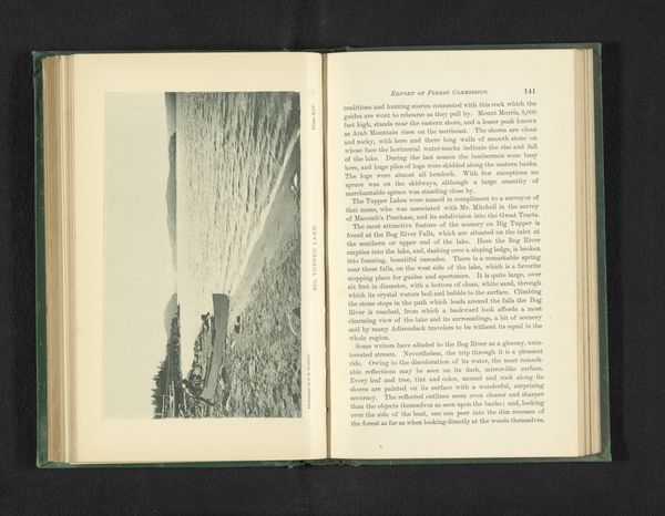 Curator: This evocative image, "Lake Placid. Mirror Lake. White Face Mountain," is an albumen print from 1891 by Seneca Ray Stoddard. I find myself drawn to its meticulous creation; you can almost trace the steps Stoddard took in rendering such detail through photographic chemistry. Editor: My first impression is one of tranquility, though it also feels a bit staged. The composition is beautiful but quite deliberately arranged. There is almost too much precision in how the light touches the water, don't you think? It romanticizes an idealized vision of nature. Curator: Well, it's an interesting point to consider the intention. Pictorialism, the style we see here, elevated photography to fine art through meticulous printing and darkroom manipulation. This landscape might tell us something about emerging technologies influencing how the Adirondacks were being perceived at the time. The rise in popularity of photographic printing emphasizes that people desired ownership and connection with these untouched natural environments. Editor: It does suggest a fascinating relationship between image production and tourism. How did the availability of these landscape prints, mass produced and widely distributed, shape conceptions of places like Lake Placid and the Adirondacks? The labor involved is an important piece. Early photographic processes were extremely complex and labor intensive, yet what we see often downplays these elements. How can an awareness of materiality allow us to engage more critically with historical perspectives about labor and landscape? Curator: The albumen printing process, with its egg whites and precise coating methods, literally embeds layers of labour and industrial manufacture into the final print. Each step relies on specialized knowledge and resources. I imagine how this framed photographic vision became an object of desire, fueled by both artistic aspirations and economic growth tied to the leisure industries of the time. Editor: Precisely. And by investigating further how those emerging industries and perceptions shaped racial and social exclusions and broader historical inequalities can unlock further interpretations. In addition to labor processes, it reminds me of the colonial roots embedded in landscape art's narrative of exploitation of land as a resource that remains urgent to address today. Curator: Absolutely. Engaging with this historical image highlights the interconnected narratives, and I’ve now begun to consider more expansively what histories were suppressed and erased during the labor processes. Editor: Indeed!
