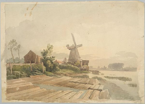 Editor: So, here we have Anton Mauve’s “View of Haarlem,” created in 1862, using ink and pencil. It feels incredibly serene. What strikes you most about it? Curator: Ah, serenity found in the everyday. I adore that, don’t you? For me, it's the light. Notice how it catches the water, those soft ripples mirroring the muted sky. It almost feels like a whispered memory. He captured the soul of Haarlem, not just its appearance. It whispers stories of gentle breezes and the rhythmic splash of oars. Do you get that feeling of a past time? Editor: Definitely. There’s almost a dreamlike quality to it. Did Mauve often focus on these tranquil scenes? Curator: Absolutely! He was fascinated with capturing the Dutch landscape with such intimate detail, such soft light and subtle beauty. It reminds us that beauty isn't always grand; sometimes, it's in the quiet corners of our lives, like a quiet afternoon spent near the river, or a conversation heard between friends, you know? It's like poetry captured with a pencil and ink, don't you agree? Editor: That's beautiful, a "poetry captured". I'll remember that! Thank you. Curator: My pleasure. Always look beyond the obvious, let the art speak to you and see where it leads your eye to travel.