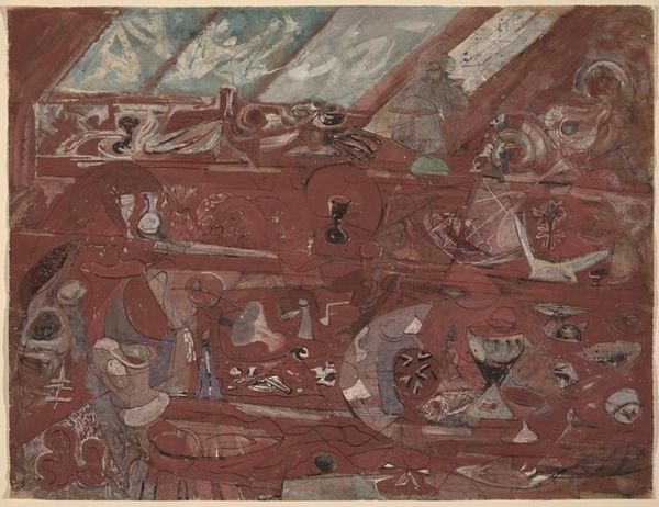 František Hudeček made this painting, Organ In The Mountains, in 1936, though it's hard to tell with what. It's a collection of lines, marks, and characters forming in and out of the landscape. There's a real sense of texture here, even though the paint looks pretty thin. It's like Hudeček built up the image with layers of lines, a bit like a feverish drawing. Look at the vertical marks that make up the "organ," how they drip and blur. Each one is different, imperfect, like the pipes of an actual organ, or maybe trees? This reminds me of Paul Klee, not in style so much, but in its playful, almost childlike way of inventing a world. The base of the mountain is a scribble of what looks like figures or symbols, a kind of dreamscape. It’s this area, more than any other, that gives the painting its foundation, its depth, making me think about the conversations that artists have with each other, even across generations. Hudeček isn't trying to give us answers, but maybe a feeling, an echo of something just out of reach.