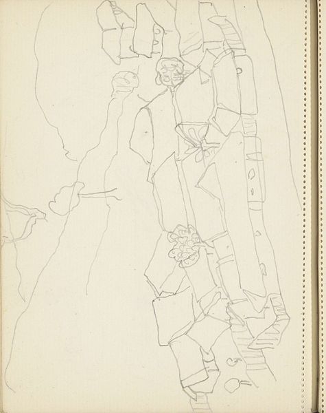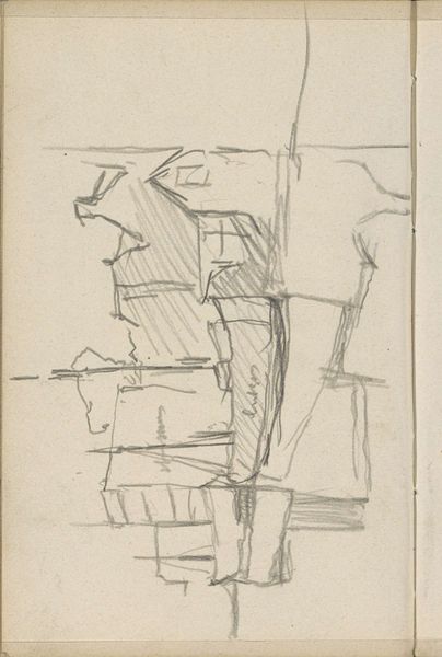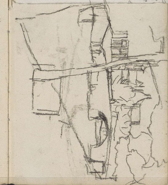 This drawing, "Gezicht op een stad of dorp" by Reijer Stolk, presents a skeletal cityscape rendered in delicate pencil lines. The composition is sparse, almost diagrammatic, reducing buildings to their essential contours. This creates a ghostly, ethereal impression. Stolk's use of line is particularly striking. Each stroke appears tentative, as if the city is emerging from or dissolving back into the page. There is a clear sense of the provisional, a structuralist perspective where the city is not fixed but in a state of flux. The absence of shading or detail draws attention to the underlying architecture. It’s a semiotic reduction of urban space, a code waiting to be deciphered. The drawing challenges the notion of the city as a solid, immutable entity, and instead suggests it is an idea. This skeletal representation prompts us to consider what constitutes a city and how we perceive its form.