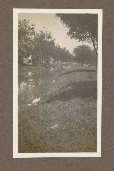 Clarence H. White created "Telegraph Poles" using a photogravure sometime between 1898 and 1905, during a period of rapid industrial expansion in America. White was a founding member of the Photo-Secession movement, and his aesthetic sought to establish photography as a fine art. "Telegraph Poles" pictures a scene of urban development. On the left of the image, various signs for local business and produce stand near a set of stairs. The dirt path leads to a small body of water lined with telegraph poles. This canal cuts between the infrastructure on either side and reflects the buildings that line it. White's work reflects the shifting relationship between humanity and technology during the turn of the century. As a teacher, White influenced a generation of photographers. His focus on emotional effect over technical precision offered an alternative to traditionally masculine values of efficiency and progress. This image reminds us of the complex ways in which technology mediates our relationship to nature and to each other.