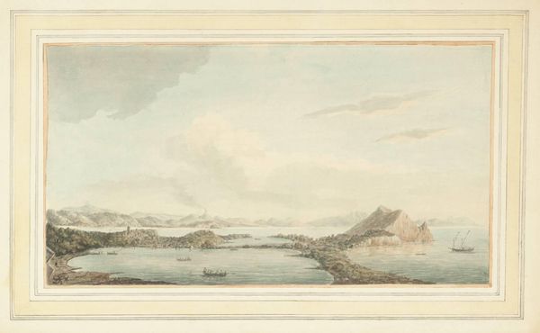 Curator: Oh, the quiet desolation! It's beautiful, almost like a memory fading into mist. Editor: This is John Baverstock Knight's "Tievebulliagh from Knocknacarry," part of the Tate collection. Look at the scale, barely bigger than a postcard, yet it holds so much space. Curator: It feels strangely intimate. Those figures in the foreground seem so small, almost swallowed by the landscape. What are they doing there, I wonder? Editor: Considering Knight's lifetime, the late 18th to mid-19th century, we can think about land enclosure and shifting rural livelihoods impacting those tiny figures. Curator: Ah, yes, you always bring it back to the politics of space! But I see it, it’s not just a pretty view, it's a stage where life is playing out. Editor: Exactly. Knight's landscapes reflect not just the beauty, but also the changing social dynamics of his time. He was capturing a world in transition. Curator: It does feel like a captured moment, a brief quiet before something changes. Something always does, doesn't it? Editor: Always. And art helps us hold onto those fleeting moments, to remember, to understand. Curator: Well said. This little drawing has a lot more to say than I initially thought.