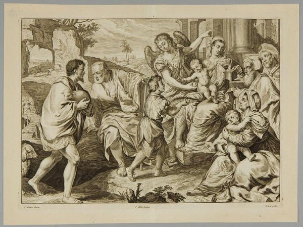 Editor: This is "The Mocking of Christ" created by Andries Both between 1633 and 1635. It’s rendered in ink, chalk, pen, and charcoal on paper and now held at the Art Institute of Chicago. I’m immediately struck by how the artist captures the cruelty of the moment. How do you interpret this work, especially given its historical context? Curator: The scene is undeniably brutal, and situating it within the context of the Baroque period is crucial. But how does Both engage with the politics of religious representation and power? Look at how Christ is centered yet seemingly vulnerable. His suffering is foregrounded, but the active expressions and gestures of those mocking him – filled with what? – contribute to the scene’s complex emotional dynamic. It's a narrative of social control, highlighting the abuse of authority. What does that evoke in terms of intersectional narratives involving race, gender, and politics? Editor: It makes me think about the vulnerability of marginalized groups throughout history and how power structures have been used to oppress individuals. But it is also about how the narratives are framed from a perspective. Curator: Precisely. Consider also Both's choice of medium. Black chalk, pen and ink often were used for preparatory studies. What impact does it have to view the Passion cycle of Christ as an expressive "sketch" rather than a highly polished, finished history painting on canvas? Does the seemingly incomplete, spontaneous design expose the constructed nature of even sacred events? Editor: That’s a fascinating point! Seeing it as a sketch makes it feel more raw and immediate, like a snapshot of injustice. It highlights not just the event but also its construction and the social dynamics at play. It’s like a powerful piece of activist art, even from centuries ago. Curator: Absolutely. And by reflecting on these connections, we gain a more profound understanding of how historical artworks can inform and challenge contemporary conversations about power, identity, and representation. Editor: I see it in a completely new light now, thinking about its role in larger cultural and political dialogues across time. Thank you!
