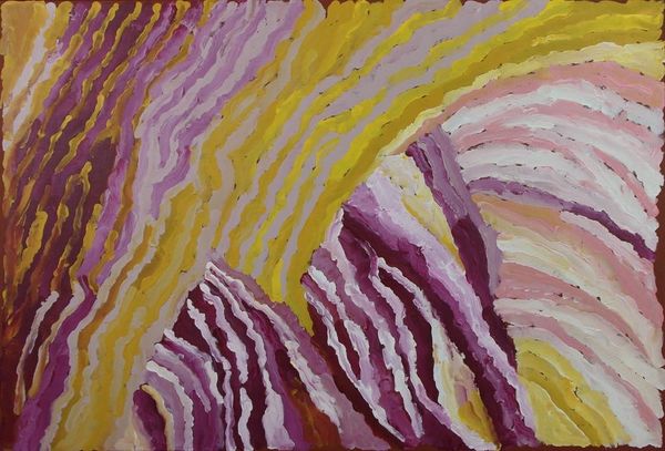 Makinti Napanangka painted "Lupulnga" with acrylic on canvas, using a vibrant palette and rhythmic lines to depict the Australian landscape. This work emerged from the Papunya Tula art movement in the 1970s, which marked a significant shift in how Aboriginal art was perceived and valued. Traditionally, Indigenous art was ethnographic, seen as anthropological artifacts rather than fine art. The Papunya Tula movement, supported by teachers and art facilitators, provided a platform for Aboriginal artists to share their stories and cultural knowledge through painting. Napanangka's work embodies this transition, reclaiming Indigenous representation within a fine art context. The painting's abstraction invites viewers to engage with the cultural narratives embedded within the landscape. To fully appreciate this artwork, we need to delve into the history of the Papunya Tula movement, and explore the cultural significance of the landscape in Aboriginal traditions. This kind of contextual research reveals the power of art to challenge institutional norms and celebrate cultural identity.