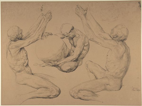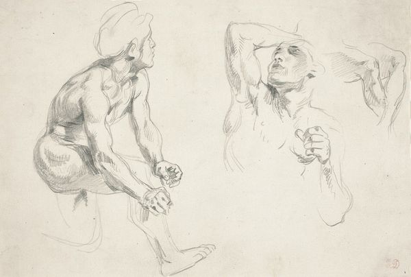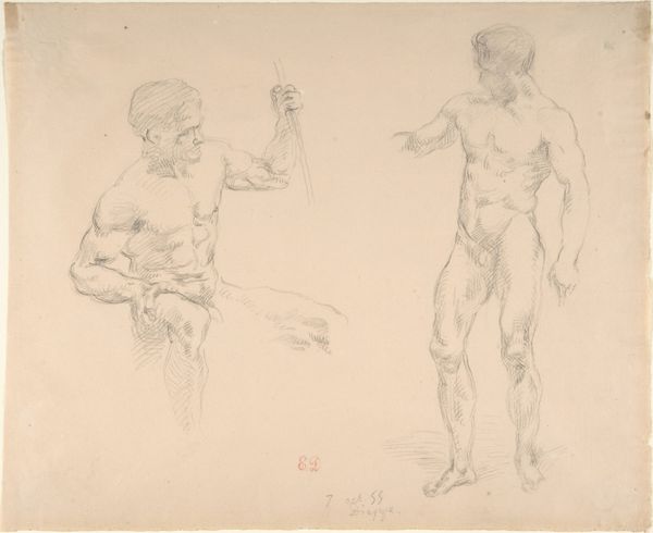 Eduard Bendemann’s ‘Studies of a Seated Bearded Man’ is a drawing made with graphite on paper. Bendemann used conventional tools and techniques, but the material itself allows for a remarkable range of expression. Graphite, essentially carbon, is soft enough to leave a mark with the slightest pressure, yet capable of capturing intricate details. In this drawing, Bendemann coaxes out a range of tonalities through varying degrees of pressure. The tooth of the paper also plays a role, as it allows the graphite to catch and create texture. The sheet is filled with a series of studies, each capturing a different pose or expression. The immediacy of drawing lends itself to capturing fleeting moments, and the intimate scale invites close inspection. This work shows Bendemann’s deft control and appreciation for the material's potential, and is a testament to how the simplest of means can result in the most compelling and evocative imagery.