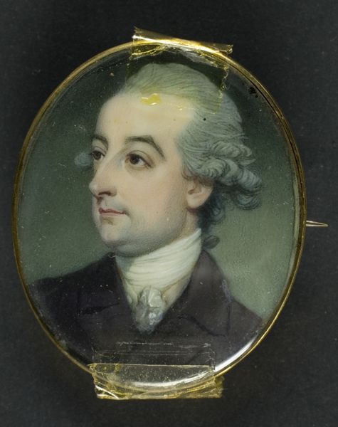 Cornelius Høyer painted this self-portrait, an oil on copper, during an era defined by rigid social structures and emerging artistic self-awareness. Høyer, working in the late 18th century, presents himself with a composed demeanor, embodying the era’s emphasis on restraint and decorum. Yet, within the confines of societal expectations, we can still observe a negotiation of identity. The miniature format, often used for intimate keepsakes, suggests a personal reflection, a private declaration of selfhood. While his attire and powdered wig align with aristocratic norms, there is a sense of individual presence in his gaze. Consider the power dynamics at play: Høyer, as an artist, both adheres to and subtly subverts the conventions of portraiture. This miniature becomes a space where societal expectations and personal expression intersect, inviting us to contemplate the complexities of identity in a world undergoing profound transformation.