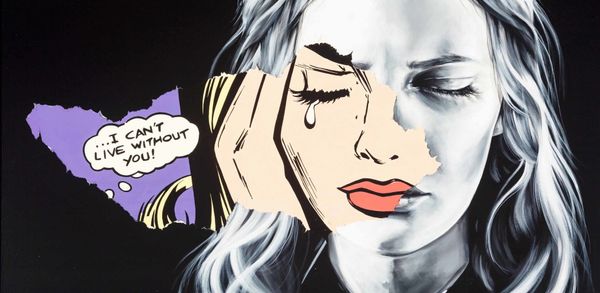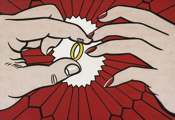 Editor: So, here we have Deborah Azzopardi's "Sshh!" from 1999, made with acrylic paint. I'm struck by its graphic style; it's like a comic book panel, but so much larger and simpler. What do you make of this insistent gesture? Curator: The silencing finger is a powerful symbol, wouldn't you agree? It spans centuries and cultures, yet it always whispers the same thing: halt, be still, listen... or perhaps, keep a secret. This "Sshh!" seems self-aware, almost confrontational. Does it feel inviting, or cautionary? Editor: I guess I always thought it meant "be quiet," but cautionary...that makes me think. What secret is it guarding? Curator: Precisely! Is it a personal secret, a cultural one? The Pop Art aesthetic, with its bold colours and simplified forms, ironically draws attention to something meant to be hidden. Notice the emphasis on the lips; their redness a universal symbol of allure but also... secrecy. This image pulls on very old visual memory. What does "silence" suggest to you beyond the obvious? Editor: Subtlety, maybe? Now that I’m thinking of that, it's a very *un*subtle take on subtlety! It's so upfront it's almost aggressive! Curator: Indeed. The power lies in its duality: a blunt symbol inviting a deeper, more nuanced interpretation. Azzopardi has masterfully tapped into our collective understanding of signs. Think about what that reveals about our relationship with these kind of images today. Editor: That’s a great point! I'll definitely see this differently now, not just as a command, but a challenge to uncover something hidden. Curator: Precisely! The enduring power of visual language.