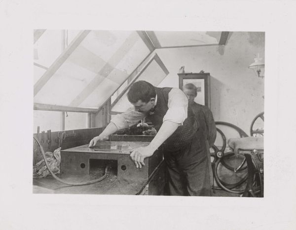 Lewis Hine made this photograph, "Making Apparatus for Laboratory", with gelatin silver. Look at the way the light plays on the glass, how the tubes curve and join. It reminds me of a drawing, all line and form. And the worker's intense focus, the way he manipulates the glass with the flame. It’s like watching a painter coaxing color onto a canvas. The textures are so interesting, aren’t they? The smooth, reflective glass against the rougher tools and the soft gradations of light and shadow. The way the light flares, almost obscuring the process. The heat of the flame seems palpable. It's like a metaphor for the transformative power of art, turning raw materials into something new. Hine was really interested in documenting labor and industry. Like Charles Sheeler, maybe? Both interested in the beauty and rhythm of work. For me this piece speaks to art as a process of constant experimentation and transformation, embracing chance and improvisation. It’s about the making, not just the made.