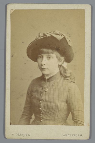 Albert Greiner captured this ‘Portret van Johanna Geertruida Jonker’ using the albumen print technique. It’s a small window into the rigid social structure of the 19th century. The portrait presents a young girl in profile, her gaze directed away, perhaps symbolic of the limited agency afforded to women, especially young women, at the time. Her attire, while neat, speaks to a certain level of domesticity and restraint. What's striking is the contrast between Johanna's youth and the formality of the portrait; it is a reminder of the societal expectations placed on women, even in their formative years. The photograph invites us to consider the intersections of girlhood, class, and representation in the 1800s. It encapsulates a moment of imposed stillness and reflection on the silent narratives of women whose stories are often untold.