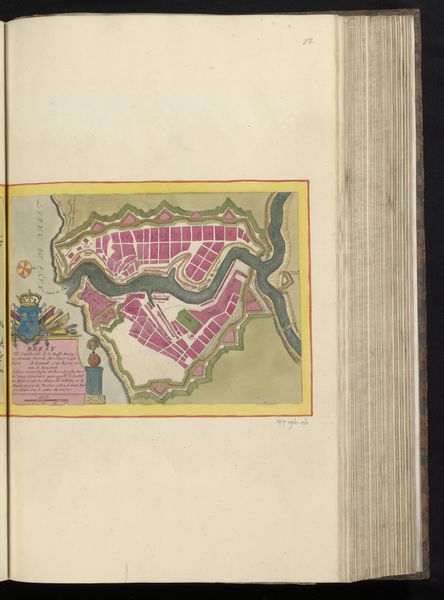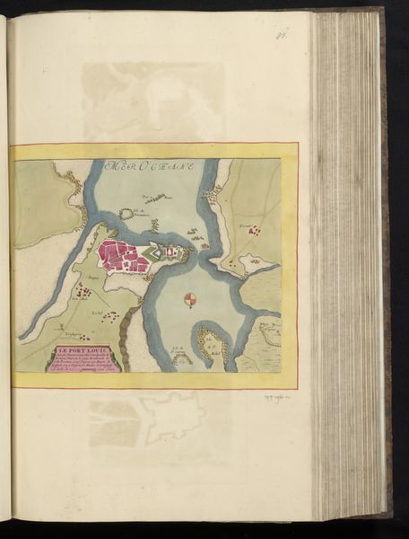 Curator: Here we have an intriguing bird's-eye view—a map titled "Plattegrond van Le Havre." It's an anonymous work, dating back to somewhere between 1690 and 1700. Look closely—it's rendered in ink, watercolor, and colored pencil on paper. Editor: My immediate impression is of intricate control, the firm grip of political power rendered as gridded order. It's not the chaotic bustle of a port city, but its subjugation to...reason? Curator: Yes, these maps served as symbolic assertions of control, quite literally framing a vision of territorial power. The sharp, star-shaped fortress speaks to this. Note the radiating projections that maximize defensive lines of fire. Such strong, albeit diagrammatic, imagery of force! Editor: What fascinates me is the process: someone had to survey this, walk those streets, even conceptualize the military strategy inherent in those fortifications. What labor went into transforming material reality into such a polished representation? Consider the ink, the pigments... Curator: Beyond mere topography, such precise imagery also signifies aspirations. Color-coded architecture, almost like a game board, suggesting town planning or future visions for development. Notice the miniature tableau indicating 'HAVRE DE GRACE'! What’s your read on that piece? Editor: Another layer of crafting identity, isn't it? To create not just a military rendering, but an idealized symbol...But think about how many hands this passed through. How was this map transported, copied, consulted? Where was it created? Curator: Those are valuable material questions. The map becomes an object loaded with political and historical weight. Consider its placement here in the Rijksmuseum—it is a kind of evidence, testifying silently. Editor: Evidence indeed! To imagine this object originating as a practical item and transforming into a decorative collectible in today’s museum speaks volumes to art’s enduring journey. It really forces us to re-think artistic work’s definition over centuries. Curator: Exactly! These kinds of symbolic forms also highlight something enduring about the way humans try to impose structure. Perhaps even try to defy temporality through immortalising our marks... Editor: Perhaps. Though I see here much less transcendence and rather far more social endeavor: the collaborative labor between many hands turning earth into political imagery that has continued influence over three centuries later.