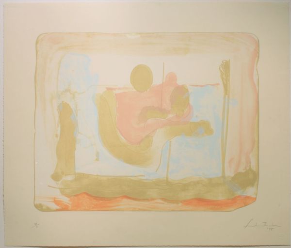Helen Frankenthaler made this print, Reflections III, using color lithography, a technique well-suited to her signature soak-stain method of painting. Frankenthaler came to prominence in the heady days of Abstract Expressionism in the United States. Many artists at that time were interested in the psychological dimensions of art. But Frankenthaler was part of a younger generation that wanted to push abstract painting in a new direction. She and others were interested in creating a painting that was more about color and form than about emotional expression. Her technique of staining raw canvas with thin washes of paint broke with tradition, and challenged viewers to see painting as a flat surface rather than a window into another world. To better understand her work, it is important to study how Frankenthaler's innovations helped shape the institutions of art in the late 20th century.