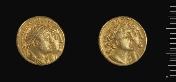 Curator: The first impression I get is one of power, even in miniature. The gold has a real weight, and those figures are rendered with surprising detail. Editor: Indeed. This is a posthumous stater of Lysimachos of Thrace, struck in Byzantium. It weighs just over 8 grams. Coins like these were crucial for trade and political messaging in the ancient world. Curator: I’m particularly interested in the image of Alexander the Great on the obverse. How does placing Alexander on a coin of Lysimachos create a certain political identity? Editor: Lysimachos was one of Alexander’s generals. Minting coins with Alexander’s image helped legitimize his own rule after Alexander's death. It’s all about inherited power and legacy. Curator: It’s fascinating to see how this tiny object carries so much historical and political weight. The coin acts as a cultural artifact and a statement of power, all in one. Editor: Precisely. The circulation of imagery helps to understand the politics of the time. It also speaks volumes about how societies construct narratives. Curator: Examining this coin helps me think about currency today. What and who do we choose to elevate, and why? Editor: And for me, it highlights how durable some forms of political propaganda can be. They last for centuries.