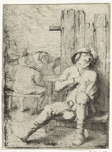 Charles Jacque created "Two Smokers," an etching, sometime in the mid-19th century. Born in Paris, Jacque was known for his rustic genre scenes, often depicting rural life. In this intimate interior, we see men gathered, pipes in hand, seemingly lost in conversation amidst the haze of smoke. The scene evokes a sense of community but hints at the complex social dynamics within 19th-century French society. Work and leisure often intertwined, and spaces like these offered respite and a sense of belonging. Jacque’s focus on everyday life can be read as a reflection on the working class, their habits, and the spaces they occupied. The choice to depict this, as opposed to the era's high society, provides a glimpse into a world often overlooked in art. What do you think these men are discussing? Does this image challenge or reinforce societal norms of its time?