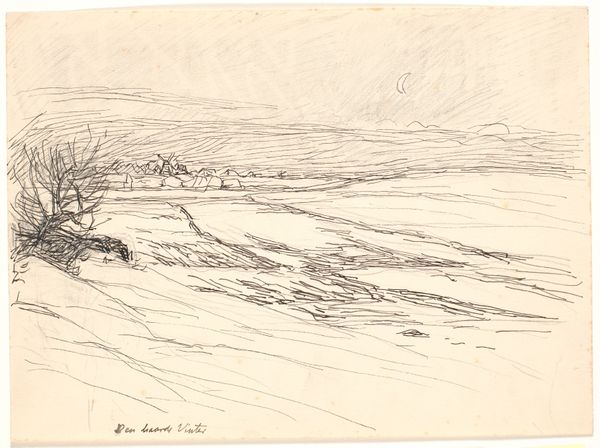 Fritz Syberg made this drawing, Ællingen maatte svømme..., with pen and ink, and you can really feel his hand moving across the page. The marks are so immediate, like a snapshot of a thought. There's this amazing contrast between the sky, which is all these frantic, diagonal lines, and the stillness of the land. Look at how he renders the water, this dense, scribbled mass. It's almost violent, yet it suggests this quiet, reflective surface. And then those delicate, spindly trees, like they're reaching out, grasping at the air. It reminds me of Cy Twombly, in a way – that same sense of raw, unfiltered expression. Syberg's not trying to create a perfect picture. It's more like he's wrestling with the scene, trying to capture its essence in these simple, but powerful, marks. And it’s that struggle, that messy process, that makes it so compelling.