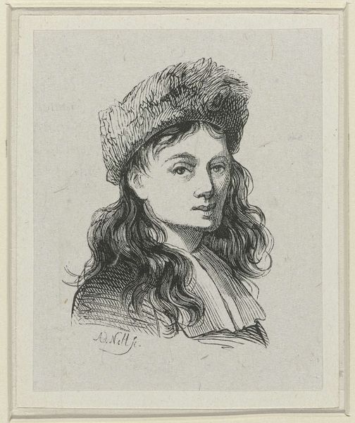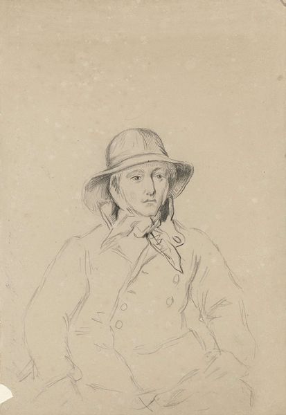 This is an undated pencil drawing of Thomas Wijck by an anonymous artist. The piece consists of delicate, barely-there hatching strokes that give shape to Wijck's face, hat and long hair, and a small portion of his upper body. The drawing is composed of a variety of short strokes placed in a predominantly vertical direction, following the lines of the face and hat. The anonymous artist used hatching, a method that relies on a series of parallel lines to suggest shadow and form. This technique, combined with the frontal orientation of the sitter, locks our gaze and encourages an intimate relationship. Wijck is pictured wearing a soft fur hat. The drawing's fine execution leaves open the reading of material, and we are left to reconcile the soft down of the hat with the sitter’s direct, challenging gaze. Consider the drawing’s structure and how the artist’s choice of hatching, with its inherent suggestion of movement, destabilizes any singular, fixed representation of the sitter. The drawing prompts ongoing visual reinterpretation.