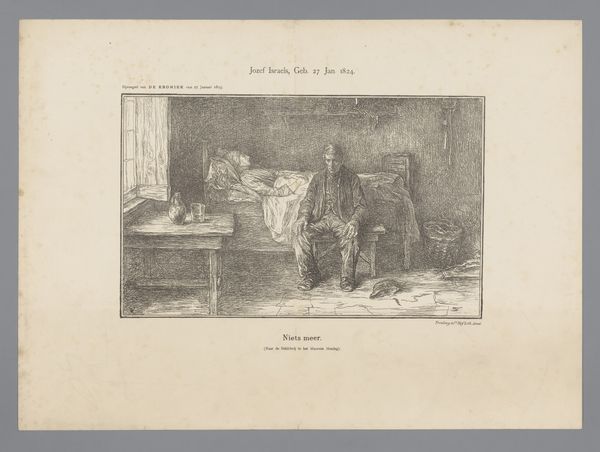 Ary Scheffer created this print, "Vrouw zit naast zieke jongeman in bed," sometime in the first half of the 19th century. As an artist, Scheffer occupied a unique position, celebrated for his emotionally charged depictions of historical and literary scenes, yet often critiqued for sentimentality. Here, a woman sits vigil beside a sick young man, her posture and expression conveying deep concern. Consider the historical context: disease was a constant presence in 19th-century life, cutting across social strata. Scheffer’s image speaks to shared human experiences of illness, care, and mortality. However, it also prompts questions about gender roles. The woman embodies a nurturing, almost saintly presence, reinforcing conventional expectations of female compassion. Yet, her focused gaze suggests inner strength. Does Scheffer simply reproduce stereotypes, or does he subtly acknowledge women’s resilience in times of crisis? The print invites us to reflect on the complex interplay between societal expectations, personal identity, and the universal experience of caring for the ill.