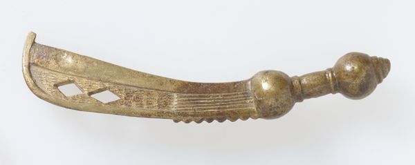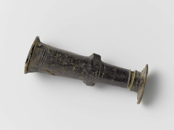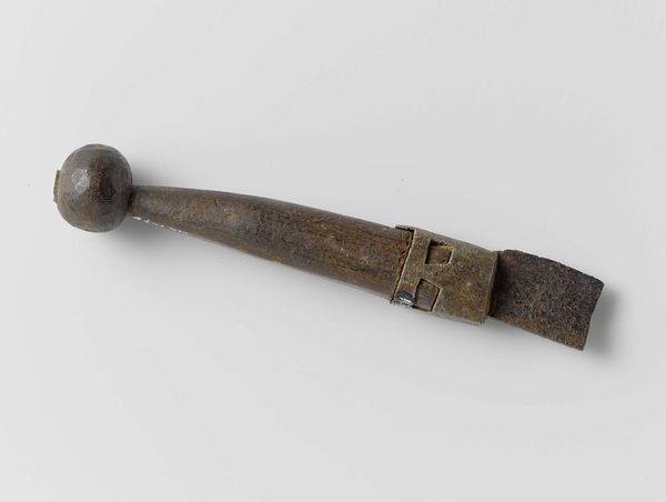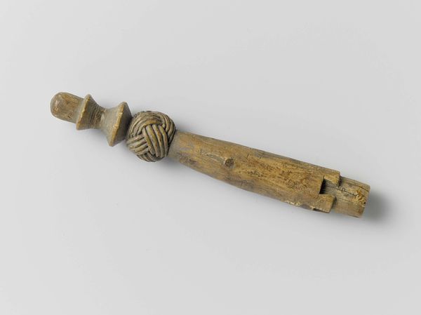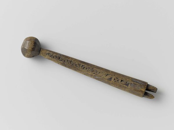 This wooden fragment, carved by an anonymous artist, presents an intriguing example of craftsmanship and material expression. The form consists of a simple, elongated wooden piece, with a knob at one end carved into the shape of a hand, pointing with its index finger. The process of carving, likely done with hand tools, reveals the inherent qualities of the wood. The grain is visible beneath a distressed, aged surface, which speaks to the passage of time. The hand has been shaped with care, even given its small scale, suggesting it may have been part of something larger. The worn surface implies utilitarian use or ritual handling. Its creation involved not only technical skill but also an engagement with material and form. This transcends traditional boundaries between fine art and craft. The object's social significance is further emphasized by its survival as a fragment, inviting speculation about its original context and purpose.
