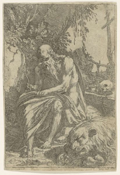 Domenico Piola rendered this drawing of Saint Jerome in the wilderness with pen and brown wash. We see the saint, aged and gaunt, in a state of penitence, a halo faintly visible above his head. The skull and the open books are potent symbols, reminders of mortality and the sacred texts that Jerome dedicated his life to translating. The motif of the skull, the *memento mori*, resonates across cultures and centuries. From ancient Roman triumphs, where a slave whispered "remember, you are mortal," to the vanitas paintings of the Dutch Golden Age, the skull serves as a stark reminder of life's transience. It’s a symbol that taps into our deepest anxieties about death and the unknown, a universal fear that transcends time. This cyclical recurrence of symbols reveals the persistence of human concerns and the power of images to evoke profound emotional responses, engaging viewers on a subconscious level. The skull, like Jerome's devotion, persists, evolving yet retaining its core significance throughout history.