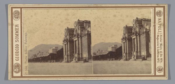 Curator: I’m struck by the composition, almost cinematic. The foreground columns provide a strong vertical structure that draws your eye across the expanse of water to the ruined architecture beyond. Editor: Indeed, and speaking of ruins, what we have here is Giorgio Sommer’s gelatin-silver print, "View of the Ruins of the Macellum of Pozzuoli", dating from somewhere around 1860 to 1880. It's currently held here at the Rijksmuseum. I think what's vital to acknowledge is how this ruin came to signify the shifting geopolitical power dynamics in the region and particularly the experience of colonial dispossession for Italian peasants under Bourbon rule. The Roman marketplace becoming a site of disease due to lowered sea levels became, for locals, a tragic parable of dispossession by disease. Curator: An interesting reading. I'm still focused on how the monochrome adds to this piece's aura of melancholic grandeur. The water's reflective surface doubles the architectural forms, and makes for interesting patterns that suggest both reality and a ghostly, ethereal dimension. Sommer uses a strong diagonal composition and various gradations to evoke depth and a sense of vastness despite the relatively small format. Editor: Precisely. But this isn’t simply about aesthetics. Let's remember that Sommer was photographing a very real, materially present site with particular connotations and impact in local economies. What about this view speaks to the conditions of Southern Italian workers at that time, or those in Naples navigating the uneven terrain of national unification? Curator: I concede your point, and find a persuasive argument. This intersection of history and environmental precarity is compelling to consider and highlights how photography served not just as documentation, but also as a carrier of cultural narratives. Editor: It brings another dimension to our understanding. And, ultimately, perhaps our differing perspectives offer a richer tapestry. This photograph now echoes not just through aesthetics, but with political consciousness. Curator: Perhaps you've offered a reminder to be mindful that behind the play of light and shadow lies social stratification and even struggle.