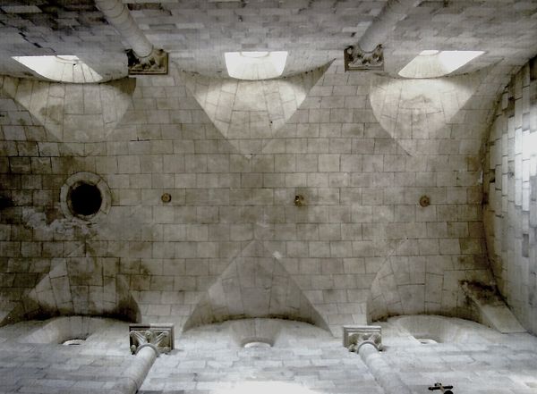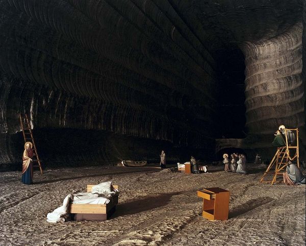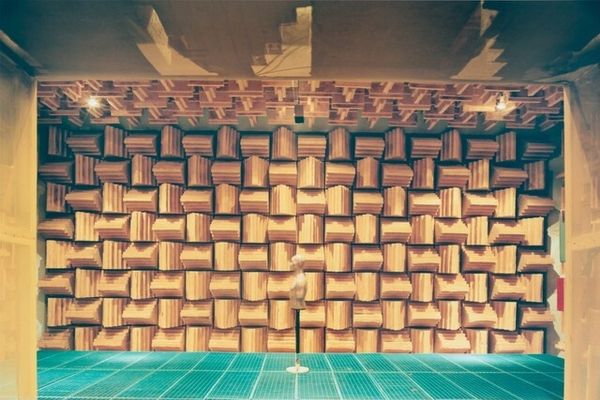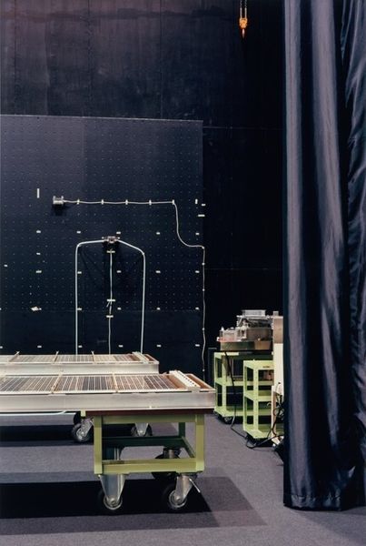 Lewis Baltz captured this photograph inside an anechoic chamber at France Telecom Laboratories. Notice the peculiar spiky forms covering every surface? These acoustic wedges absorb sound waves, creating a space devoid of echo—a modern temple dedicated to silence. But consider how this image resonates with primal fears and fascinations. The chamber's geometry evokes the labyrinth, a space historically laden with psychological weight. Think of the myth of the Minotaur's labyrinth—a place of both enclosure and disorientation, mirroring our subconscious. The spikes could also be interpreted as a field of stalactites, echoing the symbolism of caves as places of initiation and transformation across cultures. The anechoic chamber, in its stark modernity, becomes another iteration of these timeless motifs, tapping into our collective memory. The stark silence amplifies our inner voices, making this a space ripe for introspection. It speaks to the enduring human quest for knowledge and control, even as it confronts us with our own vulnerability.