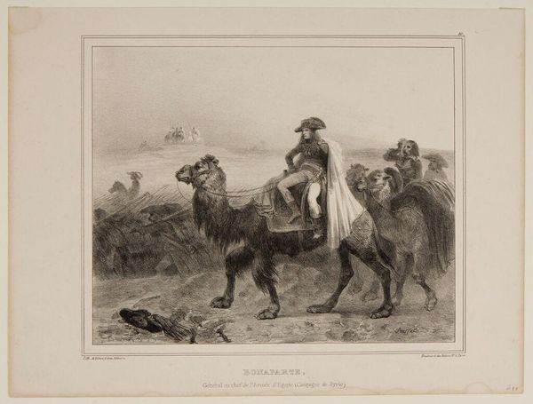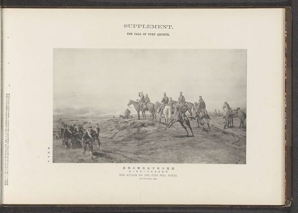 Curator: Allow me to introduce "Paard van de prins van Oranje raakt gewond bij Boutersem, 1831," or "The Prince of Orange's Horse is Wounded near Boutersem, 1831." This print, an engraving crafted by J.B. Clermans in 1831, depicts an incident during a turbulent time. Editor: My immediate reaction is to the composition. It's a rather stark image in black and white, the figures positioned almost theatrically. It appears to showcase a significant event but lacks dynamic movement, feeling somewhat static, doesn't it? Curator: The composition certainly guides the viewer. Clermans utilizes the principles of Romanticism to underscore drama. Note the use of line, the stark contrast of light and shadow, creating distinct shapes that define depth. The rigid formations versus the disarray in the foreground. What structural observations do you find interesting? Editor: Looking at it from a production angle, I’m struck by the meticulous process of engraving. Think about the labor involved to achieve this level of detail, translating this scene into a series of carefully incised lines. The artist meticulously cuts into the plate, building up the image layer by layer—each strike with the burin representing human exertion, human will. Curator: Yes, that dedication to process adds layers of understanding. Semiotics help to show that Clermans sought to communicate a clear, politically charged message, framing the Prince in a certain light amidst the ongoing conflict. It elevates the print beyond mere reportage into historical commentary. Editor: And that commentary must be interpreted through its means of production and distribution. Prints like these served as a primary means of circulating narratives about battles, figures, and nations at war. This tangible material tells us how history and politics can be molded. Curator: I appreciate the tangible, material qualities, as you mentioned, and how they offer a deeper comprehension of its creation, form, and narrative structure. Editor: And I find your careful visual readings fascinating. Both the artistry of structure and social production deepen the meaning and engagement of this engraving, truly.