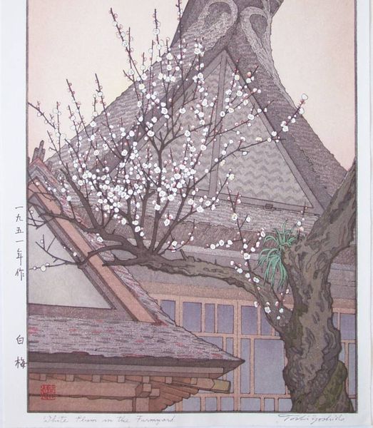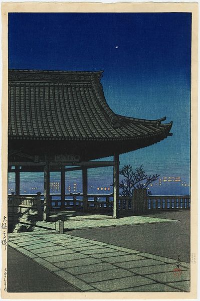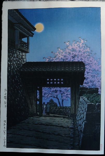 Hasui Kawase made this print of the Tōshō Shrine in Ueno. It’s got this lovely, soft palette, mixing blues and pinks, like a faded memory. You know, making art is a process of layering, of adding and subtracting until you reach something that feels true. The surface is smooth, but if you look closely, you can see the texture of the woodblocks. There's a real physicality to the image. It's like Kawase is inviting you to feel the cool evening air and smell the cherry blossoms. Look at the way the moon hangs in the sky, a delicate crescent. It balances the weight of the pagoda, creating a sense of harmony. Kawase's work reminds me a bit of Whistler, with his focus on atmosphere and mood. Like Whistler, he captures a fleeting moment, a whisper of light. Art's an ongoing conversation, right? We’re always riffing off each other, finding new ways to see the world.