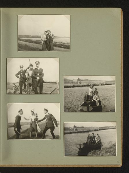 Editor: Here we have Hendrik Herman van den Berg's gelatin silver print, "Twee foto's van drie kinderen op het IJ en op de Zeeburgerdijk, 1923," or roughly translated, "Two Photos of Three Children on the IJ and on the Zeeburgerdijk." There’s a kind of melancholic stillness to these two portraits. What strikes you when you look at them? Curator: Well, consider the socio-political context. These are images from 1923, not long after the First World War, a period of significant social change. These portraits, with their somewhat formal poses, speak to a certain middle-class aspiration for order and respectability. Note the different settings: One evokes the industrial might of the port; the other, the stoicism and human attempt at land reclamation in the Zeeburgerdijk. Does the arrangement of the two pictures next to each other suggests to you some commentary? Editor: Perhaps a commentary on progress and modernity, placing the industrial alongside the more traditional rural landscape? I am also intrigued by how these images exist within an album, a very specific kind of domestic, bourgeois object. How does that influence their meaning? Curator: Exactly. They are intended for a private audience, framing the subjects within a particular family narrative. We also should consider the role of photography itself. Photography, even in the 1920s, had begun to democratize portraiture. Instead of only the wealthy being immortalized in portraits, a wider circle of society now has access. Does this make the work a formal historical document, a sentimental photo, or both? Editor: It seems to be walking a line between capturing a specific time and place and reflecting a broader shift in how people wanted to be seen and remembered. Thank you, that's helpful! Curator: Indeed. Looking closely helps us understand art as both a personal and historical document.