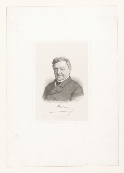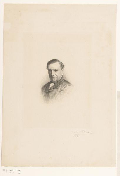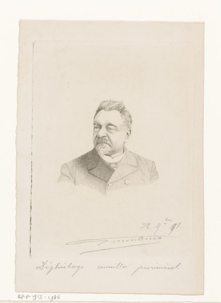Curator: Here we have Frans Lauwers’ "Portret van een onbekende man," created sometime between 1864 and 1911. It’s a pencil drawing, characteristic of the academic art style prevalent during that period. Editor: It strikes me as remarkably restrained. The delicate pencil lines create a sense of almost fragile composure, despite the man’s rather assertive mustache. Curator: Absolutely. Consider the role of portraiture during this time. It was often commissioned by the burgeoning middle class to assert social status and project an image of respectability. Editor: The hatching is interesting; Lauwers uses closely spaced lines to define the forms and create tonal variations. It’s effective but very controlled; you can almost feel the artist methodically building up the image. Curator: Lauwers’ dedication to realism and precise linework aligned perfectly with the academic standards promoted by institutions like the Royal Academies, making him a sought-after portraitist for those aiming to reflect such ideals. Editor: Do you think the lack of identifying details—the “onbekende man” element—removes it from that context, giving it more universal appeal beyond its immediate social function? The formal elements alone become the subject. Curator: Perhaps, but the ambiguity also prompts curiosity. One starts to consider the politics of representation – who got their portraits done, who was considered important enough to memorialize. The "unknown man" serves as a quiet reminder of countless lives unrecorded. Editor: I concede the point, but those textural gradations achieved with only graphite are marvelous. There is sophistication there, and I think viewers ought to appreciate such nuance! Curator: It indeed prompts interesting historical reflection; I believe that's part of what good art should do. Editor: I agree entirely. Seeing these techniques gives an added richness that a photo cannot.