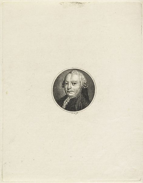 Editor: Here we have a print from the Rijksmuseum, a "Portret van Franz Heufeld" by Gottlob August Liebe, made sometime between 1756 and 1819. The portrait’s encased in an oval frame. What strikes me is the precision of the lines; it has a very formal, almost severe feel. What do you see in this piece? Curator: The formality you perceive aligns with the Neoclassical style, doesn’t it? Look closely at the oval frame itself. The wreath and the crest are visual cues. Wreaths have been used for centuries to denote accomplishment, skill, and recognition. I wonder what Heufeld did to warrant such an honor? And, what emotional message was Liebe trying to send to Heufeld’s community of peers? Editor: So, the wreath isn't just decorative, it's symbolic of achievement and potentially a statement about the sitter’s social standing. Are there other symbols that tell us about him? Curator: Well, consider the medium itself – engraving. Before photography, engraved portraits played a vital role in disseminating images of important figures. In a way, it enshrines and memorializes the person. The very act of creating and distributing this portrait reinforces his importance. Editor: That’s fascinating. So the choice of engraving, combined with the wreath, speaks to a desire to immortalize Heufeld. Is there an element of cultural memory at work here? Curator: Absolutely. We see that cultural memory not only in the style and symbols, but also in the intent. These portraits served to create a visual record and a lasting impression. They remind us who society valued and wanted to remember. Editor: It’s interesting how even a seemingly simple portrait can be so rich in symbolism and cultural meaning. It gives a whole new appreciation for the artistry and purpose behind it. Curator: Indeed. Understanding the symbolic language of art unlocks a deeper understanding of the past and how we choose to represent it.