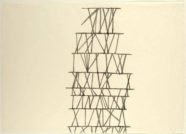 Editor: Here we have Josef Albers' "Reproduction of Transformation D," a study in stark contrasts. It feels like a blueprint for a building that exists only in the mind. What do you make of it? Curator: It's a dance between order and chaos, isn't it? Albers, ever the color and form guru, pushes the boundaries of perception. Those intersecting lines tease the eye, creating a space that both invites and confounds. Do you feel a sense of movement? Editor: I do, it feels like it's unfolding or collapsing at the same time. It makes me slightly dizzy. Curator: Exactly! Albers was brilliant at capturing that sensation. It makes you wonder what other secrets are hiding just beyond our senses. Editor: I never thought simple lines could feel so complex. Thanks for sharing your thoughts! Curator: My pleasure. Keep looking, keep questioning!
