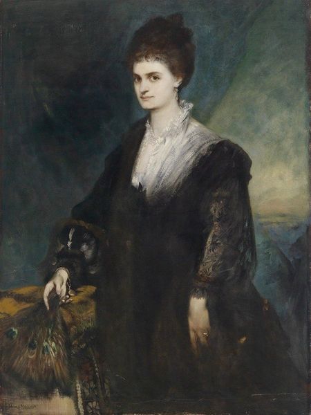 Editor: This is William Bouguereau’s "Portrait of Céline Geneviève", a somber oil painting of a seated woman. Her dark clothing and rather blank expression create a reserved and slightly melancholic atmosphere. What is your interpretation of this piece, considering its historical context? Curator: This portrait offers a fascinating glimpse into the evolving role of women and portraiture within the 19th-century French art world. Bouguereau, though immensely popular during his time, catered to the Salon system and its established tastes, particularly among the upper middle class. Editor: How would that shape his approach to a portrait like this one? Curator: While striving for realism and technical mastery, Bouguereau’s portraits like these reinforced certain social expectations and ideals of femininity. The subdued palette, Céline’s reserved pose, and her understated attire are all indicative of a societal emphasis on decorum and restraint, particularly for women of a certain class. How do you think a portrait like this functions within the public sphere? Editor: I imagine it projects an image of quiet respectability, fitting for a specific social stratum at the time. It's interesting how a painting can communicate these unspoken social rules. Curator: Exactly! Think about who commissioned such portraits, where they were displayed—private homes versus public exhibitions—and what message they were intended to convey about the sitter and their family's status. The power of art to solidify these power structures cannot be underestimated. Editor: This has been incredibly insightful. I will consider more closely these layers of meaning behind the artistic choices and their societal impact in these types of portraits. Curator: Indeed! Understanding art as a product of and contributor to its historical moment truly enriches the viewing experience.