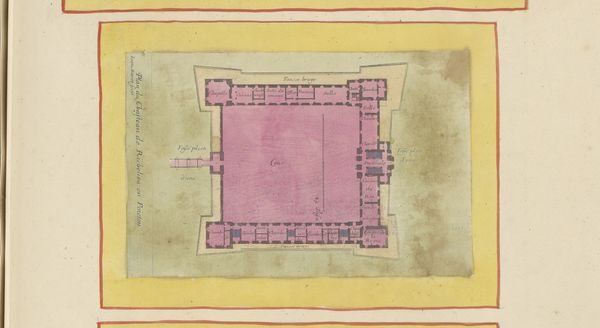 Editor: This is "Plan of a Room," a watercolor drawing created sometime between 1800 and 1850 by an anonymous artist. It's currently housed at the Metropolitan Museum of Art. It's quite an intriguing layout, almost like a puzzle. I'm struck by how the furniture arrangements seem to dictate the social dynamics of the space. What can you tell me about this piece? Curator: This "Plan of a Room" is more than just an architectural drawing; it is a fascinating window into the social and cultural life of its time. Notice how different rooms are designed and labeled—'Dinner,' 'Library,' 'Conversation Table.' These divisions weren't just about function, but reflected a structured society with clearly defined roles and activities. Editor: That makes sense. So, the layout literally frames social interaction? Curator: Precisely! Think about the rise of museums during this period. They also served to curate behavior, dictating how people should view art and interact with knowledge. This room plan, with its implied etiquette and prescribed activities, parallels that kind of curated experience, but in a private setting. Editor: That’s a great parallel. The positioning of the conversation table does feel like it dictates how many people should be around it at any given time. Almost like a museum display for social etiquette! Curator: Exactly! The very act of creating such a plan indicates a desire to control and present a specific image of domestic life. The seemingly innocent watercolor actually embodies power dynamics and societal expectations of the era. Now, consider the anonymity of the artist. Editor: You're right, that's interesting. Almost as if the *idea* of the ideal room was more important than who designed it? Curator: Possibly. Perhaps this was a common template or something for prospective landowners, but whoever created the piece wasn’t the most important part. Ultimately, that idea makes it all the more interesting. Editor: I never considered a floorplan could hold so much social commentary. It has given me a new way to approach how public and private spaces interact in art. Curator: Indeed, considering art within its social and institutional framework often reveals unseen dimensions.