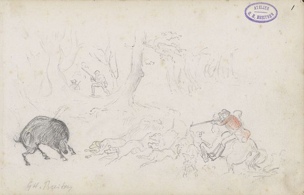 This study of mice gnawing on food was drawn with pencil by Johanna van de Kamer, though when exactly, we don’t know. What I love about this piece is the simplicity, the way she captures the scuttling movement, the shared enterprise of these little creatures. You can see the artist feeling her way through the forms, the repetition of lines building up the shapes, a palimpsest of gestures. Look at the mouse on the lower left; the pencil strokes describing its back are tentative, searching. The surface of the paper is raw, exposed, and the lines are delicate but sure. It's a drawing about looking, about the act of seeing and describing. The subtle gradations of tone achieved with simple pencil lines give the drawing depth and form. I think of Goya's etchings when I see this; he had a similar ability to capture life and movement. I love how Van de Kamer embraces the messy, provisional nature of drawing. There's no fixed meaning here, just the pleasure of looking and recording.