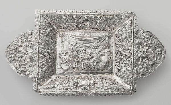 Paulus van Vianen was celebrated for his unrivalled silver reliefs. This dish shows the goddess Diana being surprised by the huntsman Actaeon. She changes him into a stag: his hat is already sprouting antlers. The kwab style is used in many forms in the splendid, broad border, which commands as much attention as the scene it surrounds. The story depicted on the inside of this basin is continued on the reverse. Actaeon, transformed into a stag, is killed by his fellow huntsmen and devoured by his hounds. Never before had the underside of a dish been embellished with another scene. The ornament is even more prominent than on the front. The basin’s feet are veritable kwab sculptures.