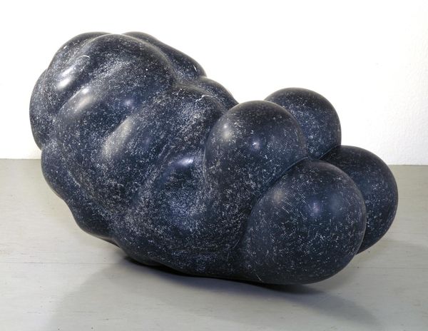 Curator: Barry Flanagan created this travertine sculpture, known as untitled (carving no. 13/81), with dimensions that invite a grounded perspective. Editor: Its form, at first glance, seems so primordial, like a gigantic fossil or some ancient artifact. The texture gives it such a weight. Curator: The porous quality of the travertine links it to geological time scales, yet the sculpted form suggests a conscious shaping, perhaps alluding to the interplay between nature and culture. It also brings to mind the subconscious, in its fluid, suggestive shape. Editor: The subtle curves are fascinating; the overall composition exudes balance and invites you to walk around it, exploring its shape from different angles. The materiality is at odds with the organic form of the carving. Curator: It’s a constant dialogue, isn’t it? Between the material’s origins and Flanagan’s intention, that asks us to consider the long echoes of natural processes. Editor: Yes, and how we frame these processes as art. It makes us reflect on our own interactions with nature’s gifts.
