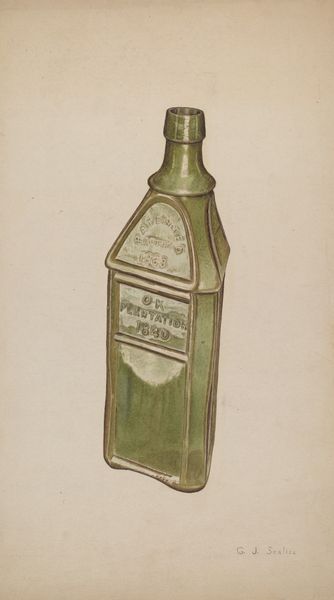 Dorothy Brennan created this watercolor of a Bitters Bottle sometime in the 20th century. The bottle's design, reminiscent of a log cabin, and the words "1860 Plantation Bitters," evoke a romanticized, yet deeply troubling vision of the antebellum South. Brennan's painting invites us to consider the narratives we tell ourselves about history. Who does it serve when we package and sell nostalgia for a time built on exploitation? While Brennan herself did not create the original bottle, the choice to depict it speaks volumes. Was she drawn to its aesthetic qualities, or was she trying to make a statement about the way history is commodified and consumed? Perhaps she wanted the viewer to consider the bitter aftertaste of a past that continues to haunt us. The simple rendering of the bottle invites a sober reflection on the stories we choose to preserve and how we tell them.