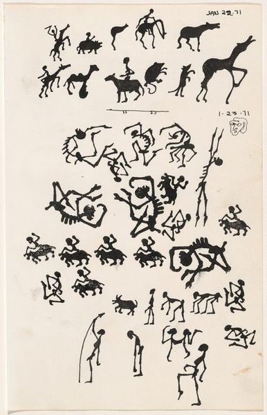 This sheet of sketches was made by Paul Gauguin in the late 19th century, using graphite on paper. It’s a great example of how traditional materials can still offer insight into artistic practices. The sketches show Gauguin’s interest in capturing the forms and anatomy of various animals. Graphite, as a medium, allows for quick, fluid lines, perfect for capturing fleeting observations. The choice of paper, with its texture and absorbency, also influences the final appearance of the work, creating a slightly rough, immediate quality. What’s interesting here is the directness of the artistic process. There is no complex layering of materials, or laborious techniques. It’s a simple combination of hand, graphite, and paper, and its inherent qualities give the sketch its unique character. In the end, understanding the materials and making helps us to appreciate the intimate connection between the artist and his subject, reminding us that even the simplest of tools can be used to create enduring works of art.