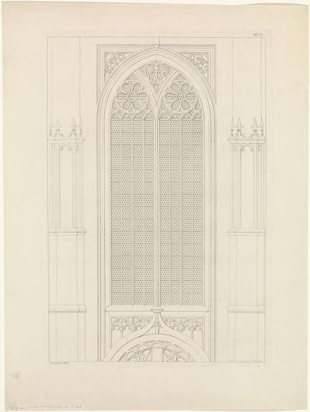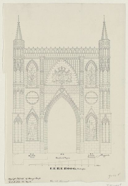 Alphonse Pierre Giraud sketched the Noordportaal van de Hooglandse kerk te Leiden with pencil and paper. The drawing confronts us with a symmetrical composition, dominated by vertical lines that accentuate the height and imposing nature of the architectural structure. The use of linear perspective creates a sense of depth, drawing the eye upward towards the intricate details of the gothic facade. The geometric precision in the drawing, where each line and angle meticulously delineates the architectural elements, underscores the mathematical underpinnings of Gothic design. We can think of this structure as a semiotic system, where the pointed arches, ribbed vaults, and the cruciform plan are signs that encode the religious values and cosmological beliefs of the medieval world. The drawing serves not merely as a representation of a building, but as an intersection of architectural form and cultural meaning.