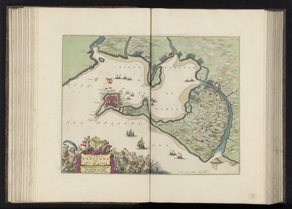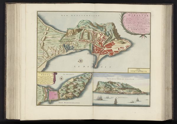 Editor: This is a map of Barcelona from 1706, created by Nicolaes Visscher II. It's a beautiful engraving on paper. What immediately strikes me is how it juxtaposes the natural and the man-made, with that imposing mountain overlooking the clearly fortified city. How do you interpret the visual language used here? Curator: The mountain looming over Barcelona acts as a potent symbol. Throughout history, mountains have represented steadfastness, challenge, and the sublime. But here, next to the detailed grid of the city and those ships dotting the coastline, what do you think the mountain *means* in relation to Barcelona, at this particular historical moment? Editor: Maybe a kind of enduring, natural power against the, comparatively, fragile and new aspirations of the city? Almost a warning? Curator: Precisely. Notice the ships—symbols of trade, power, and potential invasion. A map isn’t just a record of space; it's a record of intent. Barcelona in 1706 was caught in the War of the Spanish Succession. Visscher isn’t merely charting streets, he is presenting a worldview. What endures, what is fleeting, and what might threaten it. What emotional associations does the "sea of ships" bring to your mind? Editor: Anxiety, a kind of maritime pressure cooker… Knowing the history definitely adds a layer of understanding to this image. I hadn't considered maps in such a symbolic context before. Curator: Yes, maps become powerful historical narratives, laden with the symbolic weight of a specific time. Hopefully, from now on you can bring these cultural perspectives to bear in the study of urban landscapes.