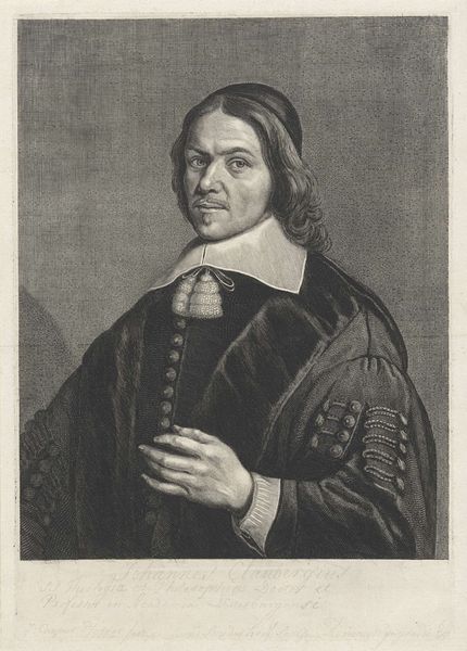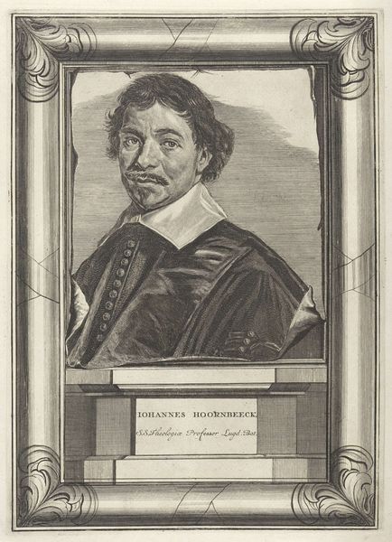 This portrait of Johannes Hoornbeeck was made in the 17th century by Jonas Suyderhoef, using engraving. This is an intaglio process, where the image is incised into a plate, typically copper, and then filled with ink to be transferred onto paper. The engraver's skill lies in the delicate manipulation of line. Notice the subtle gradations of tone, achieved through varying the density and depth of the engraved lines. The process demands meticulous labor, and the final print is a testament to both the artist's technical expertise and artistic vision. Engraving was a key technology for disseminating images and information in early modern Europe. In its capacity to reproduce images, printmaking was intertwined with social issues of labor, politics, and consumption. It allowed for relatively affordable multiples, playing a crucial role in shaping public opinion and cultural identity. Considering the material and processes involved enriches our understanding of the artwork's historical context, and challenges traditional hierarchies between art and craft.