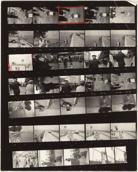 Curator: This intriguing untitled piece by Ian Breakwell, part of the Tate collection, presents a double image reminiscent of film stills, dated January 1973. Editor: Immediately, I’m drawn to the ghostly, almost dreamlike quality of the figures – like a half-forgotten memory playing out. Curator: Indeed. The composition, with its stark contrasts and monochromatic palette, emphasizes the materiality of the photographic process itself. Editor: It feels very intimate, yet detached. The calendar date adds a layer of specificity that is then contradicted by the distorted, surreal image. It's like capturing a fleeting moment, but only partially. Curator: Precisely. Breakwell’s use of serial imagery invites us to decode the narrative fragments, exploring themes of time, memory, and representation. Editor: It makes you wonder what happened on that particular Sunday. Was it important, mundane, sad, or joyful? The mystery is palpable. A bit haunting, really. Curator: A powerful piece that leaves a lasting impression, prompting us to consider the nature of images and their relationship to our own personal histories. Editor: Absolutely. I keep going back to that pale blue. Makes me feel nostalgic for something I never knew.