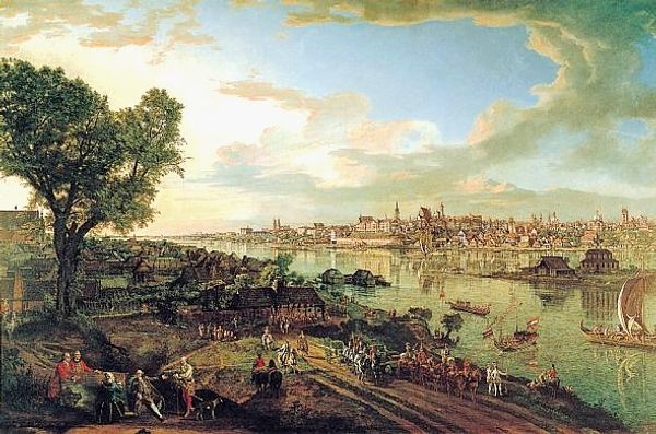 Editor: Here we have Bellotto's "View of Warsaw from the terrace of the Royal Castle," created in 1773 using oil paint. It has this tranquil, almost staged feel, like everyone is posing for a group portrait. What's your read on it? Curator: It's vital to see this painting not just as a pretty cityscape, but as a political statement. Bellotto, working under King Stanisław August Poniatowski, consciously presents an image of a prosperous, well-ordered Warsaw on the eve of the partitions of Poland. The level of detail emphasizes the vibrant city life and royal patronage. Can you sense the tension between what's depicted and what was historically happening? Editor: I guess I was focused on the surface. I hadn't thought about it as propaganda. Curator: Consider who's absent, too. Are there diverse groups of people depicted? Who gets to occupy this 'perfect' urban landscape? This focus promotes a certain narrative that must be critically examined, including how women and marginalized groups were depicted or omitted altogether. It urges viewers to look at who benefits from this ‘ideal’ city. Editor: So the painting, in its striving for perfection, ironically reveals underlying social tensions? Curator: Precisely! And the realism that seems purely descriptive also works ideologically, obscuring those very tensions by presenting a harmonious façade. Now, do you see how "realism" can serve a specific power structure? Editor: Absolutely. Seeing the city not just as buildings and streets, but as a stage for power dynamics changes everything. Curator: And by viewing this work through that critical lens, we resist the singular story and can reveal a multitude of truths. This deepens our experience beyond simple admiration. Editor: I will never see landscape paintings in the same way!