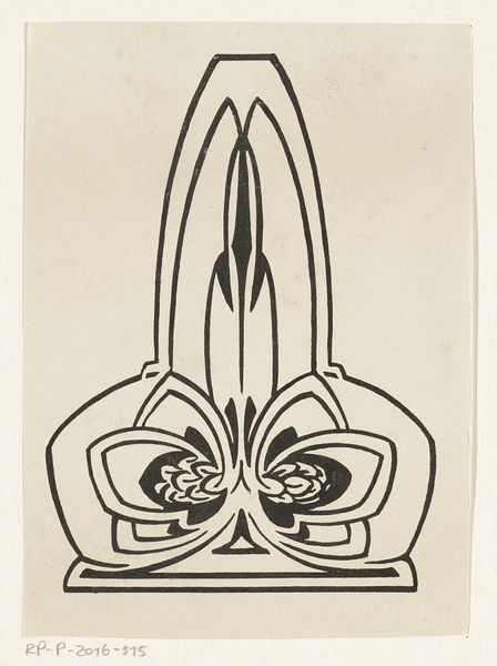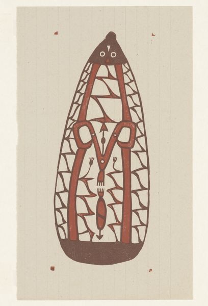 Editor: So, here we have "Schild", a drawing in ink by Reijer Stolk, created sometime before 1942. What immediately grabs me is its almost totem-like quality and very tribal feel... What do you make of it? Curator: Schild… shield. Yes, I feel the primal hum. You know, sometimes a shape whispers secrets of ages past. The abstraction here, those geometric tremors – they’re like echoes. Do you see a story being told or a symbol being conjured? Perhaps it’s about the very act of defending something… innocence, identity? Editor: It could definitely be protection, it definitely seems to serve a purpose! It feels less decorative, maybe even spiritual. Curator: Spiritual, yes! Stolk uses the ink in such a bold way. Think about what ink meant at that time. It was intention. Purpose. Did you know artists sometimes believed the tool chose *them*, and not the other way around? Perhaps, this shield *asked* to be drawn. Almost demanded it. Editor: Wow. I've never really considered how the material guides the creative process like that. It really encourages me to slow down, look again and think about each material's inherent quality! Curator: Precisely! Let art take you on unexpected trips, make up stories. You see, even if its function seems self-explanatory, its deeper meaning depends on us and how open we are to its story! Isn't that delicious?