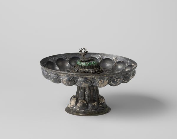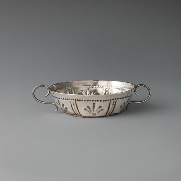 Editor: We're looking at a 'Miniature bowl with cover,' crafted between 1685 and 1715. It’s made of silver and currently resides at the Metropolitan Museum of Art. The craftsmanship is quite beautiful! The fluted design on the lid is simple, yet elegant, and its miniature form lends it a precious quality. How do you see this work through a Formalist lens? Curator: What strikes me immediately is the proportional relationship between the bowl and its cover. Note the carefully calibrated curves, echoed in both the bowl and the lid; they provide an exceptional visual unity. Also, observe the reflective properties of the silver, how light is captured and distributed across its surface, modulating the form and drawing the eye. Consider, too, the way the Baroque aesthetic manifests here – the restrained yet undeniable emphasis on ornamentation. Do you perceive that? Editor: Yes, I see that now! The ornamentation is not excessive, but purposeful. What does that suggest in terms of structure? Curator: Exactly! This ornamentation highlights the inherent structure; the ridges on the lid and bowl serve to accentuate its form. The visual tension derives from the balance between smooth and textured surfaces, and that very dialogue engages our perceptual system in deciphering its essence. Every formal choice plays a crucial role in understanding the aesthetic impact. Editor: It’s like the structure reveals itself through the textures! It's far more sophisticated than just a pretty little bowl. I appreciate seeing how the structure carries and reveals so much in it! Curator: Indeed! Through our visual parsing, we begin to appreciate not only the creator’s skill but also a language of form expressed through metalwork.