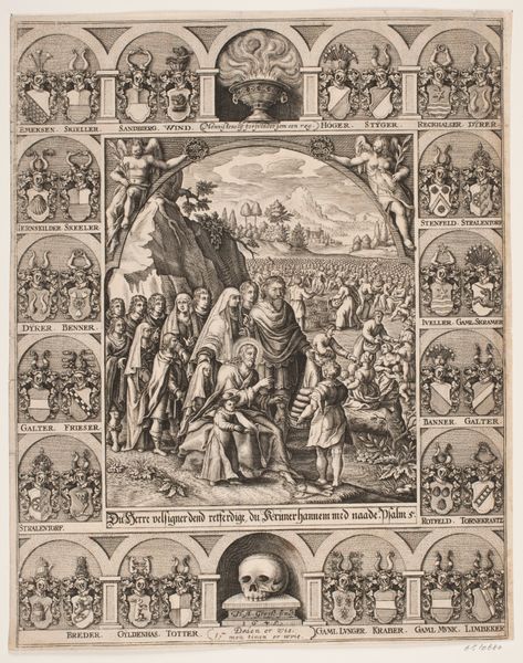 This title page for the Hollandsche Mercurius of 1669 was etched by Romeyn de Hooghe. Here, classical allegories abound, most notably the figures of Holland and Mercury. The figure of Holland, armed for battle, clasps hands with Mercury, the messenger god, his caduceus prominent, signifying commerce and negotiation. The joining of hands—*dextrarum iunctio*—is an ancient Roman motif. It was used to seal alliances, oaths, and treaties. It also reappears in funerary art as a symbol of farewell, gesturing a bond between the living and the dead. The presence of *dextrarum iunctio* here suggests a desire for harmony and balance, perhaps reflecting the political and economic interests of the Dutch Republic. We see this recurring motif used in different times, as a subconscious desire to connect across different realms, emphasizing the emotional power and psychological depth that visual symbols can hold, inviting us to contemplate the cyclical nature of history.